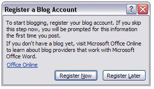 اگر قبلا در سایت سرویس دهنده وبلاگ خود ثبت نام نکرده باشید از شما می خواهد تا ثبت نام نمایید پس روی Register now کلیک کنید . اگر Register Later را هم بزنید باز در مراحل بعد از شما ثبت نام می خواهد .