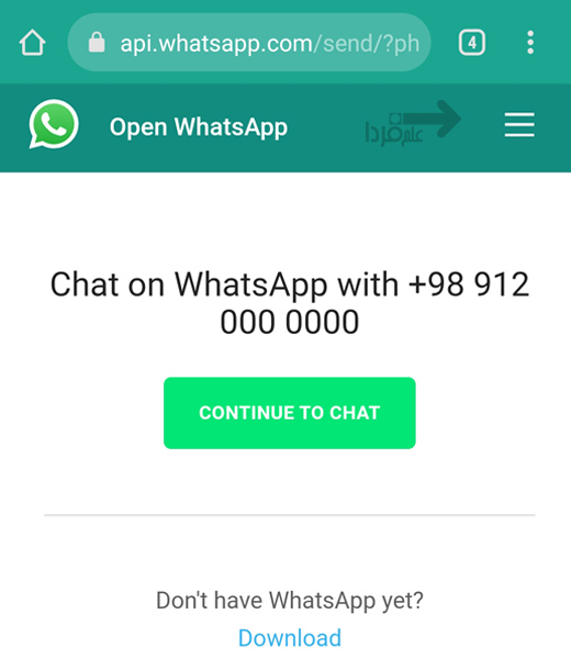 ■ آدرس رو طیق چیزی که بهتون گفتم وارد کنید و بعدش وارد سایت whatsapp میشید و بعد روی دکمه Continue to chat رو بزنید و تمام!