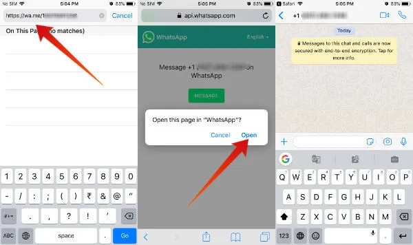 روش ارسال پیام در واتساپ بدون ذخیره شماره در آیفون و آیپد (iOS)