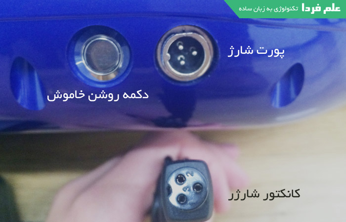 ■ اسکوتر برقی یه پورت شارژ داره ، یه دکمه پاور و چند تا چراغ LED واسه زیبایی و همینطور نشون دهنده وضعیت باتری