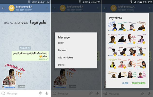 اضافه کردن استیکر های ارسال شده توسط دوستان ، به تلگرام