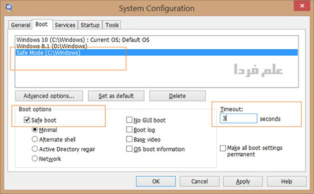 اضافه کردن سیف مود Safe mode به منیوی بوت ویندوز 10