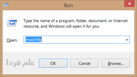 ■ حالا پنجره Command Prompt رو ببندید و بعد کلید های ترکیبی Win + r رو بزنید تا برنامه Run اجرا بشه . در کادر برنامه Run این عبارت رو تایپ کنید msconfig و بعد enter بزنید .
