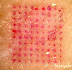 اثر سوزن های ریز روی پوست ، بعد از تزریق واکسن توسط برچسب واکسن