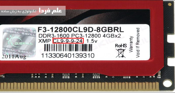 در واقع عدد بالا اینجوریه : CL – tRCD – tRP – tRAS – CMD که در 99 درصد موارد اون CMD رو نمی نویسن . پس عدد اولی از سمت چپ میشه CL و عدد اولی از سمت راست میشه tRAS .