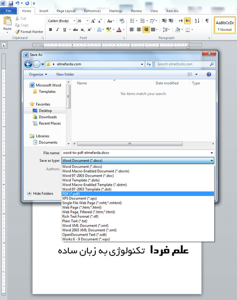 تبدیل فایل ورد به PDF با استفاده از برنامه ورد در بسته آفیس