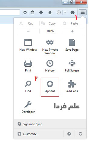 ■ روی گزینه Options کیک کنید تا وارد تنظیمات مرورگر فایرفاکس بشید .