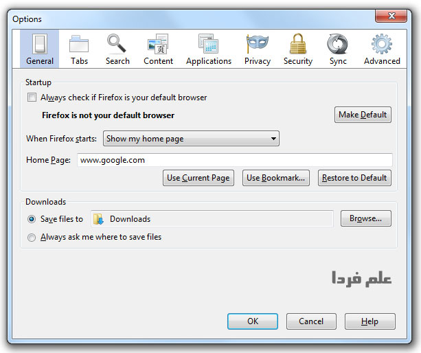 تغییر صفحه خانگی فایرفاکس به سایت دلخواه