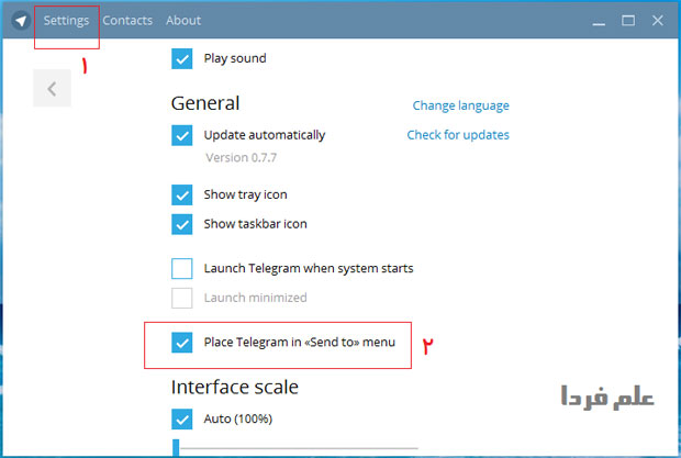 اضافه کردن تلگرام به منیوی Send to ویندوز از طریق تنظیمات تلگرام