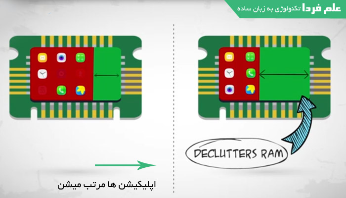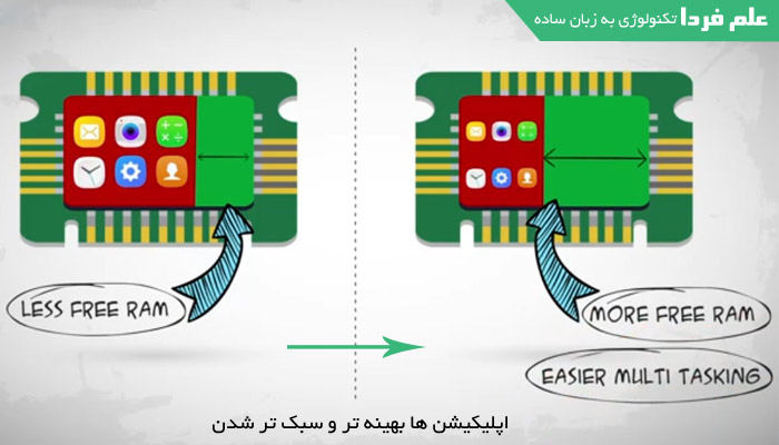 سامسونگ در سه مرحله ، تونسته کاری بکنه که خیلی بهینه تر از حافظه رم گوشی ، سیستم عامل و هسته سیستم عامل استفاده بشه .