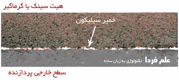 خمیر سیلیکون تا حدی مهم هست که اگه در عملکردش خللی ایجاد بشه کامپیوتر یا لپ تاپ خاموش میشه مخصوصا موقع بازی های کامپیوتری که فشار روی گرافیک و خود CPU زیاده . پس دیدید که حفره های بسیار ریزی که روی سطح قالب پردازنده و همچنین خود هیت سینگ فلزی هست باعث بوجود اومدن خمیر سیلیکون شده .