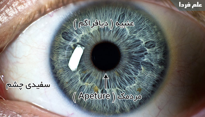 در چشم انسان ، مردمک دقیقا کار روزنه Aperture رو انجام میده و عنبیه کار دیافراگم . یعنی عنبیه ، اندازه باز و بسته شدن مردمک رو کنترل می کنه . الان بیشتر توضیح میدم .