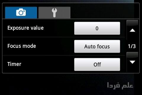 منیوی تنظیمات دوربین در اندروید