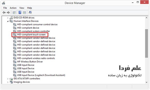 HID-compliant touch screen گزینه مربوط به غیر فعال کردن صفحه لمسی در ویندوز