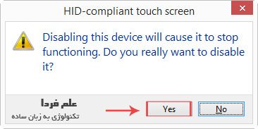 برای غیر فعال کردن صفحه لمسی در ویندوز گزینه Yes رو کلیک کنید