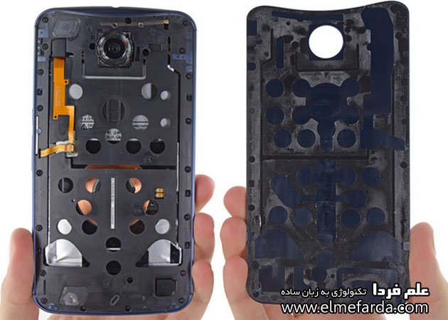 تاریخ انتشار : ۰۶ آذر ۱۳۹۳محصول جدید و مشترک گوگل و موتورولا یعنی نکسوس ۶ چند وقتی هست که معرفی شده . نکسوس ۶ جزء فبلت ها به حساب میاد چون اندازه صفحه نمایشش حدود ۶ اینچه . چیپست اسنپدرگون ۸۰۵ که یکی از قوی ترین چیپست های موبایلی هست ، حافظه RAM سه گیگابایت ، دوربین ۱۳ مگاپیکسلی ، رزولوشن نمایشگر QHD و تراکم پیکسلی ۴۹۳ پیکسل در اینچ که محشره . حالا امروز می خوام طریقه باز کردن و رسیدن به قطعات داخلی نکسوس ۶ رو بگم خدمتتون .