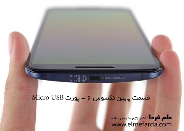 در قسمت پایین فبلت نکسوس ۶ هم پورت Micro USB برای اتصال به کامپیوتر و همینطور دریافت شارژ تعبیه شده .