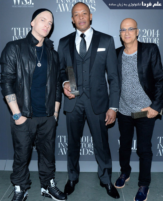 شرکت Beats Electronics در سال 2006 توسط Dr.Dre و Jimmy Iovin تاسیس شد . در عکس زیر ، سمت راست آقای Jimmy Iovine هست و نفر وسط هم آقای Dr.Dre . سمت چپ هم خواننده معروف امریکایی ” Eminem ” هست که نقشی در تاسیس شرکت Beats نداشته .