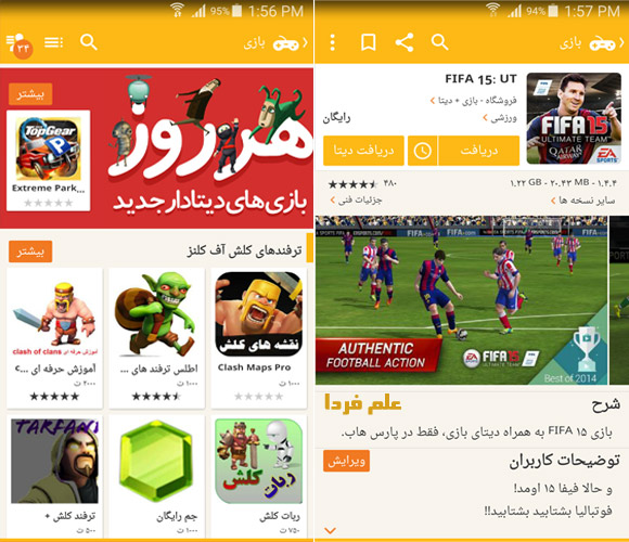 یکی از چیزایی که به جز پارس هاب در هیچکدوم از مارکت های اندرویدی ایرانی ندیدم اینه که در قسمت توضیحات بعضی از برنامه ها و بازی ها یک فایل ویدیویی هم وجود داره ( مثه گوگل پلی ) که می تونید دموی اون اپلیکیشن رو هم ببینید. شاید برای شما هم پیش اومده باشه که از عکس های یه بازی خوش تون اومده اما وقتی اون بازی رو نصب کردین، متوجه شدین که محیط بازی با اون چیزی که تو عکساش دیدین خیلی فرق داره و کیفیت خود بازی ضعیفتره. اما اگر قبل از نصب برنامه بتونید دموی اون برنامه رو ببینید قطعا خیلی بهتره .