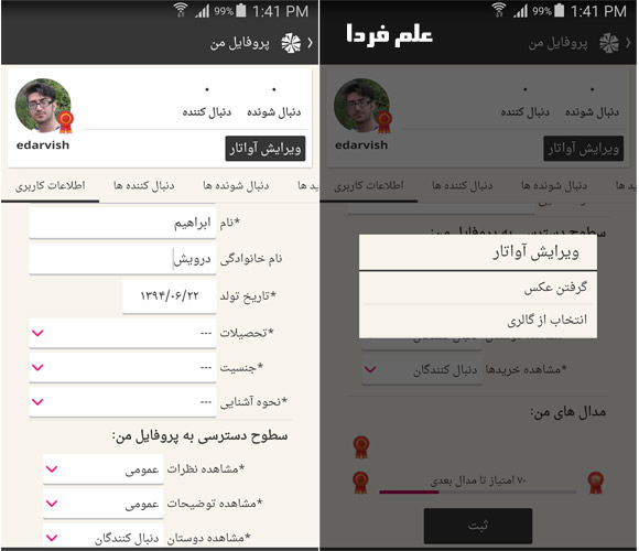 ■ ویرایش اطلاعات کاربری مثه نام ، سن و سایر موارد .