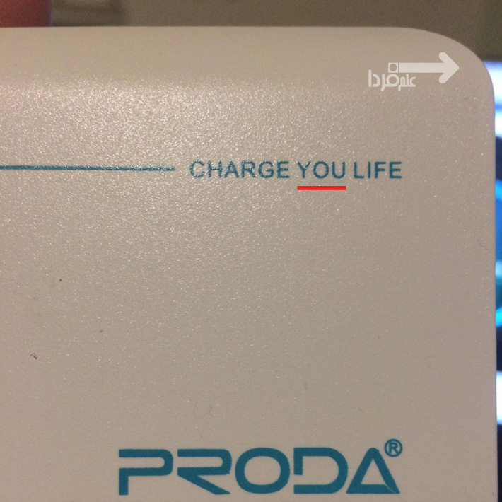 مثلا تو تصویر بالا یه پاور بانک رو میبینید که عبارت Charge You Life روش نوشته شده و همونطور که میدونید به جای You باید مینوشت Your . به همین سادگی میتونید تقلبی بودن این محصول رو متوجه بشید . شرکت های معتبر هیچ وقت از این سوتی ها نمیدن !