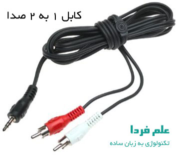 اگه تلویزیون تون خروجی هدفون داره با استفاده از یه کابل ۱ به ۲ صدا ( همون فیشی که برای اسپیکر کامپیوتر استفاده کردید . ) می تونید صدای تلویزیون رو به باند سینما خانگی انتقال بدید . کابل ۱ به ۲ صدا :
