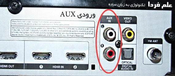 پشت دستگاه آمپلی فایر سینما خانگی هم یه قسمت هست زده AUX . شکل زیر :