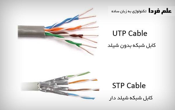 کابل شبکه به دو نوع شیلد دار و بدون شیلد تقسیم میشه . شیلد واسه جلوگیری از نویز های داخلی و خارجی طراحی میشه . در واقع کابل شبکه تو حالت کلی به دو نوع STP و UTP تقسیم میشه . STP مخفف Shielded Twisted Pair هست به معنی زوج به هم تابیده شیلد دار و UTP هم مخفف Unshielded Twisted Pair هست به معنی زوج به هم تابیده بدون شیلد . شیلد می تونه دور کل سیم ها باشه ، می تونه دور زوج سیم ها باشه و می تونه دور 4 تا سیم باشه . تو بعضی کابل ها ، هم دور تمام سیم ها شیلد می زنن و هم دو به دو شیلد می زنن . به هر حال کار از محکم کاری عیب نمی کنه !