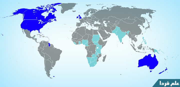 در عکس زیر تمام کشور های انگلیسی زبان مشخص شدن :
