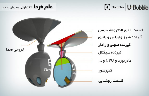 ساختار یو بابل U-Bubble از دو قسمت کلی تشکیل شده. یه قسمت همون حباب پلاستیکیه و قسمت دیگه ( قسمت بالایی ) در واقع قلب این سیستمه و همه اجزای مهم الکترونیکی در اون جا داره . در شکل زیر می تونید ساختار داخلی یو بابل U-Bubble رو ملاحظه بفرمایید .