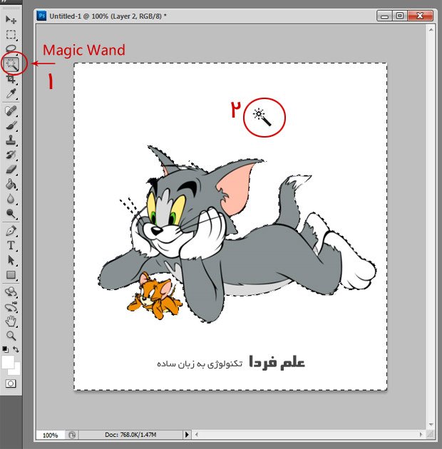 حالا عکس مورد نظر تون رو بکشید بندازید در این فایل جدید که ساختین ( همین 512 در 512 ) و بعد با ابزار مجیک واند Magic wand قسمت های پس زمینه عکس رو از خود عکس جدا کنید . برای اینکه عکس تون درست و اصولی Transparent بشه بهتره از عکسی استفاده کنید که پس زمینه یک دست و مرتبی داشته باشه .