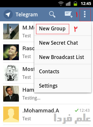 برای ساخت گروه در نسخه اندرویدی برنامه تلگرام مراحل زیر رو انجام بدین :