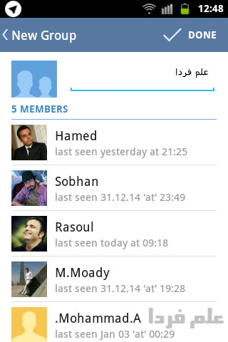 ■ در صفحه بعدی باید نام گروه تون رو بنویسید و بعد ، از منیوی بالا روی گزینه Done کلیک کنید . تموم شد !