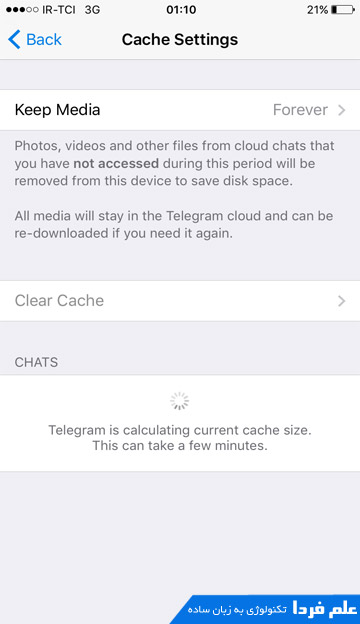 آموزش پاک کردن کش تلگرام در آیفون و آیپد