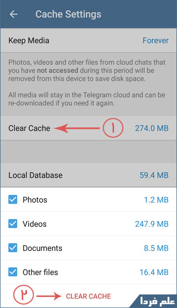 • پاک کردن کش تلگرام یا Clear Cache