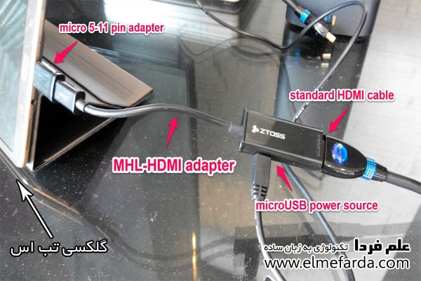 البته قبلا هم گفتم که گوشی ها و تبلت های جدید سامسونگ مثل گلکسی اس ۴ و گلکسی اس ۵ و تبلت گلکسی تب اس ، از درگاه ۱۱ پینی استفاده می کنن . به خاطر همین واسه وصل کردن گوشی و تبلت های سامونگ به تلویزیون نیاز به یه رابط ۱۱ پین به ۵ پین هم هست . البته در برخی محصولات ، توی جعبه شون کابل MHL مخصوص بهشون شاید باشه .
