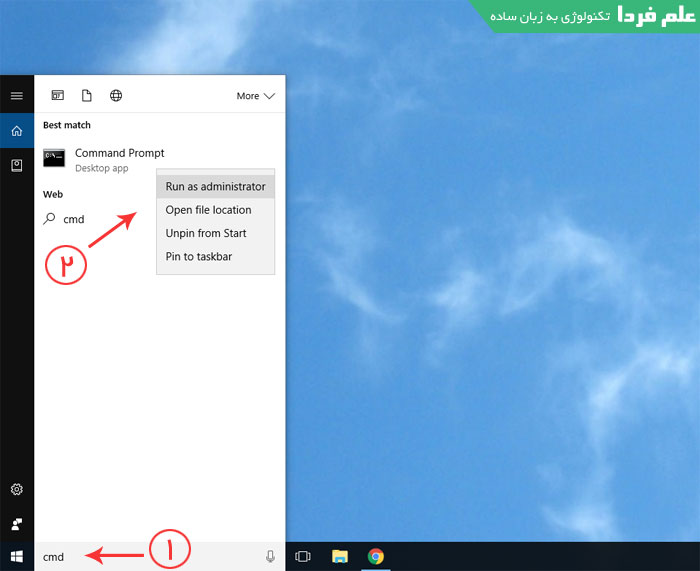 اجرای برنامه CMD به عنوان ادمین در ویندوز 10