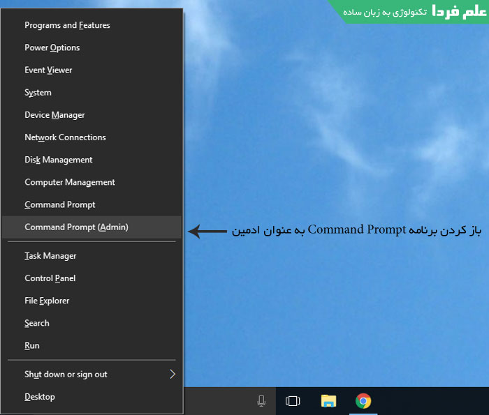 ■ از این منیو روی گزینه Command Prompt Admin کلیک کنید .