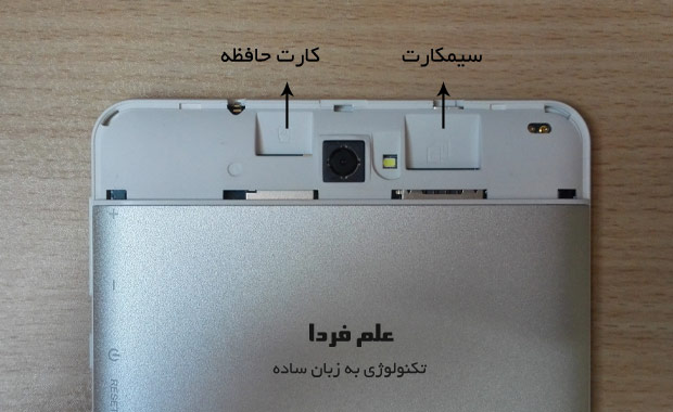 اگه تبلت اسمارت رونیکس 874 رو تو دست تون بگیرید ، اولین چیزی که دنبالش می گردین ، اسلات سیم کارت و اسلات کارت حافظه Micro SD هست . باید بگم که در پشت تبلت و در قسمت بالا ، یه تیکه از قاب با انگشت جدا میشه و از اونجا می تونید سیم کارت و همینطور حافظه جانبی رو جا بزنید . این که جای سیم کارت و کارت حافظه یه جورایی قایم میشه و تو دید مردم نیست آدم حس امنیت بیشتری می کنه . هرچند که خب دسترسیش ضعیفه اما معمولا سیم کارت و کارت حافظه چیزی نیست که آدم بخواد پشت سرهم تعویض کنه یا کارشون داشته باشه .