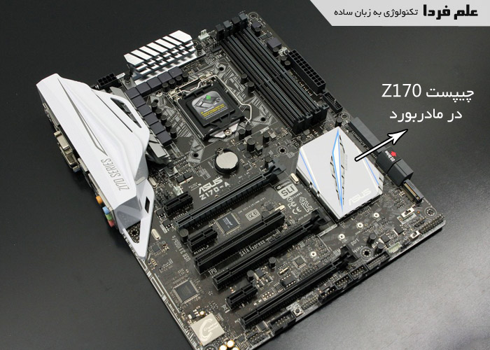 اینتل برای هر پردازنده جدید ، یه چیپست هم معرفی می کنه . اگه نمی دونید چیپست چیه حتما پست چیپست چیست رو بخونید . برای پردازنده های اسکای لیک ، چیپست سری 100 معرفی شده با نام مستعار Sunrise Point . چیپست مخصوص پردازنده های دسکتاپ اسکای لیک مدل H170 یا Q170 و یا Z170 هست که سری Z از همه بهتره . چیپست Z170 می تونه تا 20 تا خط PCI Express رو ساپورت کنه . پست ” PCI Express ” رو حتما بخونید . معنی عمومیش یعنی می تونید حافظه SSD با سرعت و تعداد بیشتر به مادربورد وصل کنید ، کارت گرافیک های بیشتر و سریع تر و کلا وسایل جانبی بیشتری به مادربورد وصل میشه . نسل بعدی سی پی یو های اینتل که Kaby lake نام داره ، از همین سوکت 1151 اما از چیپست 270 استفاده می کنه .