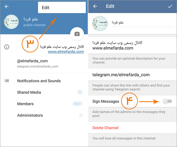 فعال کردن امضا مدیر کانال تلگرام – آموزش تصویری