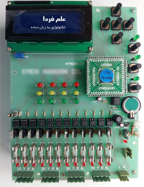 این دستگاه با تکنولوژی جدید و استفاده از میکروکنترلرها می تونه چراغ های ترافیکی رو بر اساس نوع و مدل چهارراه کنترل کنه . چراغ های راهنمایی سر چهارراه ها باید توسط یه مدار الکترونیکی تنظیم و کنترل بشن وگرنه مشخص نمیشه که چه زمانی چراغ باید سبز بشه یا قرمز . ضمن اینکه ثانیه شمار چراغ راهنمایی هم توسط همین مدار ، کنترل میشه . جالب اینجاست که توسط این مدار می تونید چراغ راهنمایی رو برای روزهای مختلف هفته برنامه ریزی کنید . به لطف وجود صفحه LCD و کلیدهای مختلف بر روی پنل ، اپراتور می تونه چراغ های ترافیکی رو به صورت آنلاین تنظیم کنه ( هم دستی و هم اتوماتیک ) .