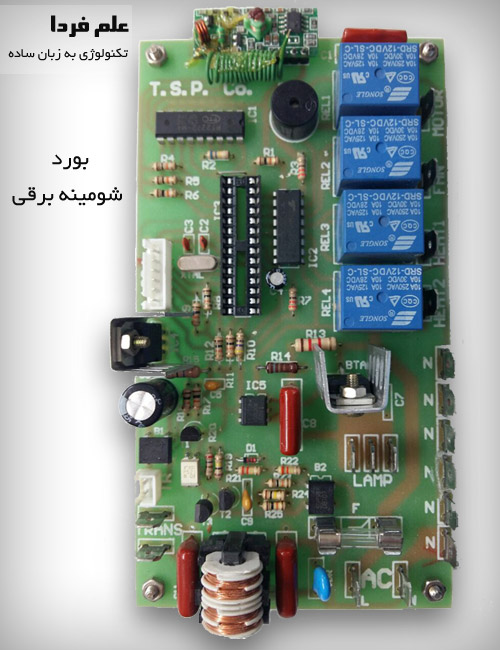 این برد برای کنترل هیترها ، فن ، چراغ ها ، موتور  و … در شومینه های برقی استفاده میشه . برد کنترل شومینه دارای دو نوع طرح لامپی و طرح LED هست . در طرح لامپی از حالت دیمر دیجیتال و در طرح LED از کنترل کنندهای RGB برای کنترل نور استفاده شده . این برد به وسیله صفحه کلید و همچنین ریموت RF کنترل می شه .