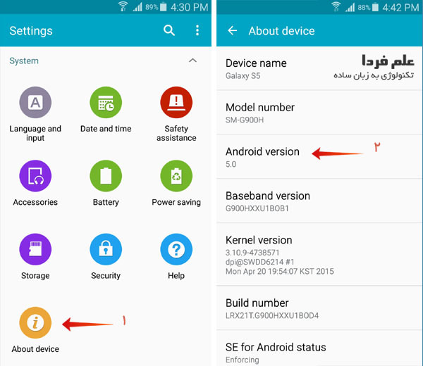 گوشیم گلکسیs5 ,ولی گزینه ی about device وندارم وقتی search میکنم گزینه software update و میاره ولی باز نمیشه. میشه لطف کنید راهنمایی کنید ؟!