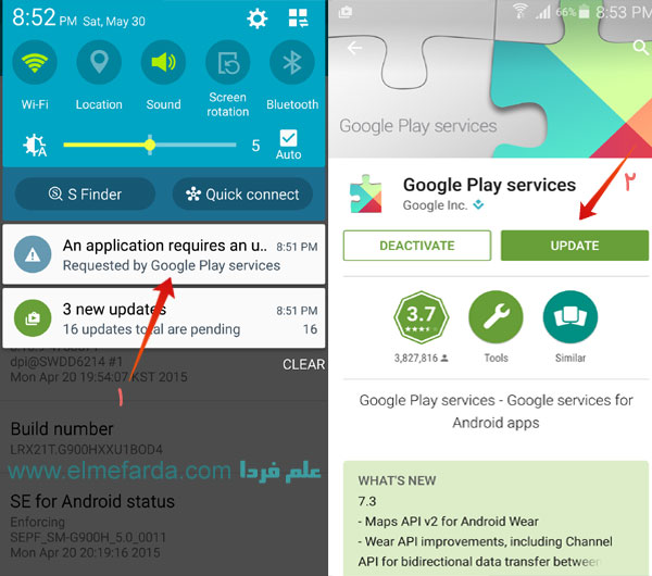 آپدیت Google play services بعد از نصب اندروید 5 روی گلکسی اس 5