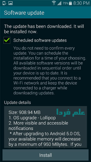نصب آپدیت های مربوط به اندروید 5 برای گلکسی اس 5
