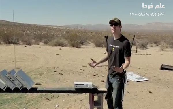 توی این ویدیو از اکس باکس ۳۶۰ های قدیمی رنگ سفید استفاده شده هرچند کیفیت ساختشون تقریبا مثل اکس باکس های مشکی طرح اسلیم هست . ۱۲ تا اکس باکس ۳۶۰ رو به صورت دومینو کنار هم گذاشتن و یه تیر از اسلحه با کالیبر ۵۰ شلیک میشه . فکر می کنید چندتا از اکس باکس ۳۶۰ می تونن جلوی حرکت تیر اسلجه کالیبر ۵۰ رو بگیرن ؟