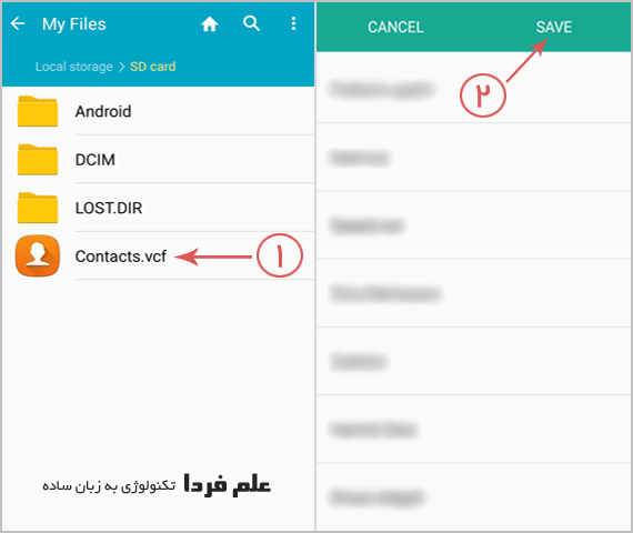 اگر گزینه Save رو انتخاب کنید فهرست مخاطبین موجود در فایل بکاپ تون در گوشی ذخیره میشه .