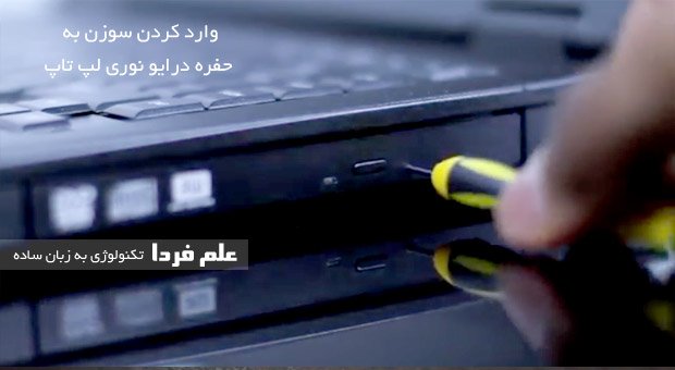 قبلا در پست ” مشکلات رایج DVD رایتر ها ” خیلی از مشکلات رو توضیح دادم و حتی باز کردن درب درایو نوری کامپیوتر رو هم گفتم . باز کردن DVD درایو لپ تاپ هم مثل باز کردن درایو نوری کامپیوتره . یعنی باید دنبال یه حفره خیلی ریز روی درایو نوری بگردید .