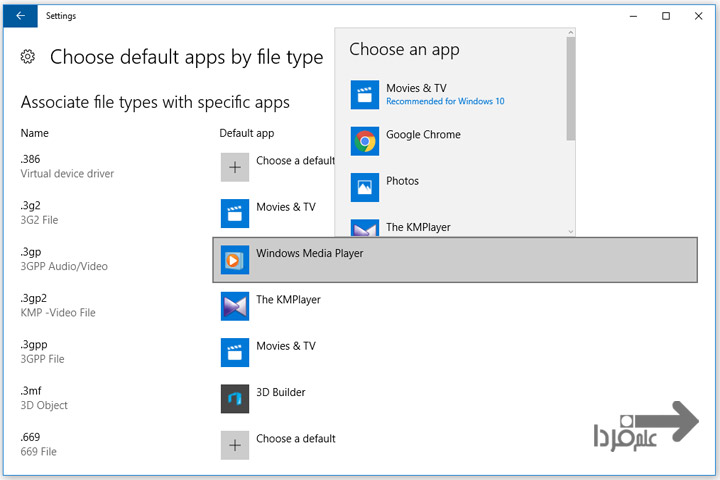 تغییر برنامه های پیش فرض در ویندوز 10 بر اساس نوع فایل
